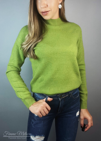 Плетена блуза в мастилено зелен цвят с рипсен ефект, изработена от мека и разтегаема материя, не предизвиква дразнене.