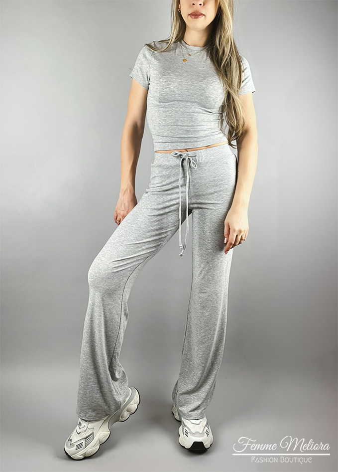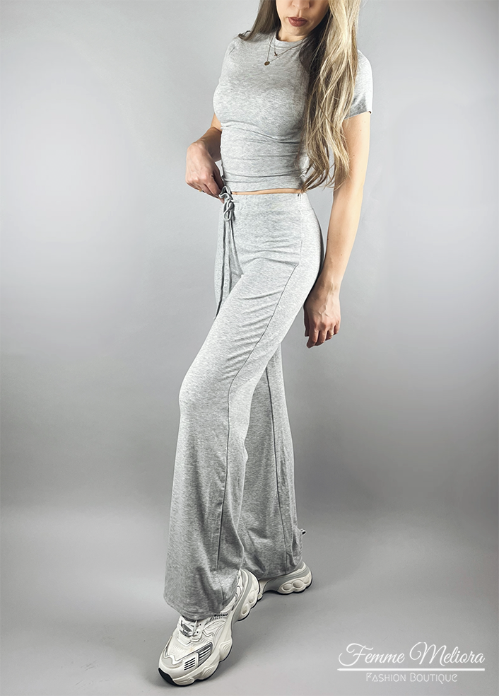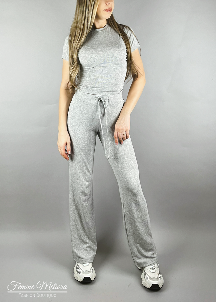 Представяме ви спортен дамски сет от две части от нашата нова есенна колекция – перфектната комбинация от стил, комфорт и прилепнал силует! Комплектът е в прилепнала кройка, която подчертава фигурата, и е изпълнен в модерен тъмно сив цвят.