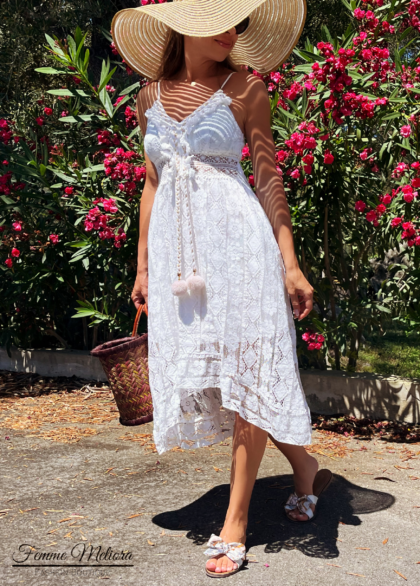 Бяла плажна дантелена рокля