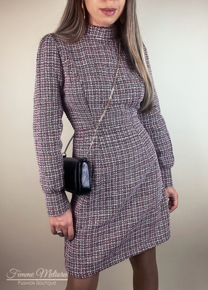 Зимна плетена рокля с поло яка и дълъг ръкав